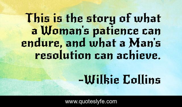 This page presents the quote "This is the story of what a Woman's patience can endure, and what a Man's resolution can achieve.". Author of this quote is Wilkie Collins. This quote is about story, woman, man,.