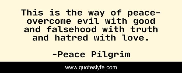This page presents the quote "This is the way of peace-overcome evil with good and falsehood with truth and hatred with love.". Author of this quote is Peace Pilgrim. This quote is about positive, confidence,.