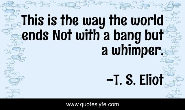 This page presents the quote "This is the way the world ends Not with a bang but a whimper.". Author of this quote is T. S. Eliot. .