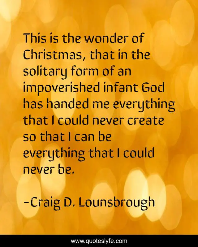 "Craig D. Lounsbrough Quotes." Quoteslyfe.com, 2025. Fri. 05 Dec. 2025. <https://www.quoteslyfe.com/quote/This-is-the-wonder-of-Christmas-that-134361>.