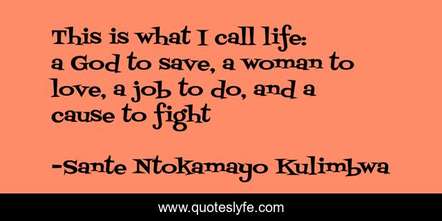 This page presents the quote "This is what I call life: a God to save, a woman to love, a job to do, and a cause to fight". Author of this quote is Sante Ntokamayo Kulimbwa. .