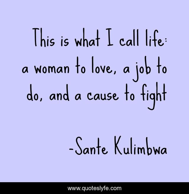 This page presents the quote "This is what I call life: a woman to love, a job to do, and a cause to fight". Author of this quote is Sante Kulimbwa. .