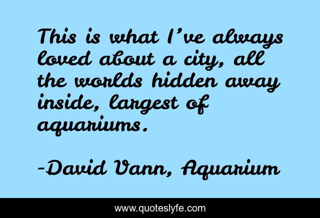 This page presents the quote "This is what I’ve always loved about a city, all the worlds hidden away inside, largest of aquariums.". Author of this quote is David Vann, Aquarium. This quote is about city, worlds,.