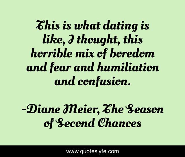 This page presents the quote "This is what dating is like, I thought, this horrible mix of boredom and fear and humiliation and confusion.". Author of this quote is Diane Meier, The Season of Second Chances. .