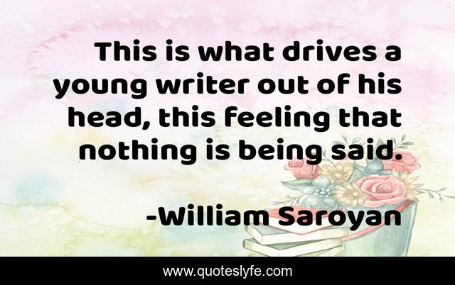 This page presents the quote "This is what drives a young writer out of his head, this feeling that nothing is being said.". Author of this quote is William Saroyan. This quote is about writer, books,.