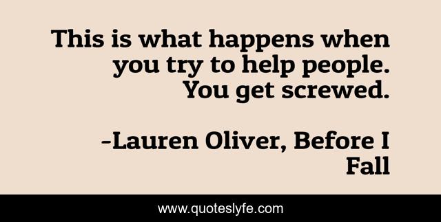 This page presents the quote "This is what happens when you try to help people. You get screwed.". Author of this quote is Lauren Oliver, Before I Fall. This quote is about before-i-fall, young-adult-fiction,.
