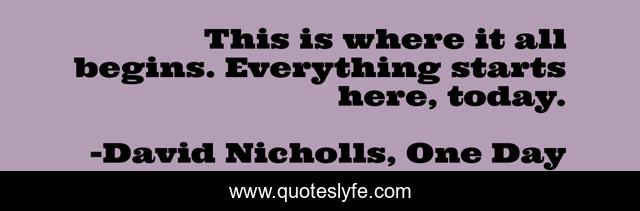 This page presents the quote "This is where it all begins. Everything starts here, today.". Author of this quote is David Nicholls, One Day. This quote is about love, hope, affection,.