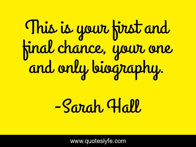 This page presents the quote "This is your first and final chance, your one and only biography.". Author of this quote is Sarah Hall. This quote is about life, chances, final-chance, first-chance, chance, live, final, biography,.