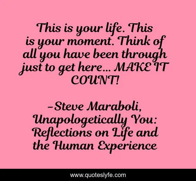 "Steve Maraboli, Unapologetically You: Reflections on Life and the Human Experience Quotes." Quoteslyfe.com, 2025. Tue. 09 Dec. 2025. <https://www.quoteslyfe.com/quote/This-is-your-life-This-is-your-143460>.