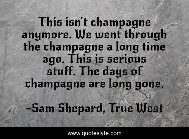 "Sam Shepard, True West Quotes." Quoteslyfe.com, 2025. Sun. 07 Dec. 2025. <https://www.quoteslyfe.com/quote/This-isn-t-champagne-anymore-We-went-52345>.