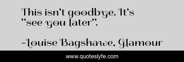 "Louise Bagshawe, Glamour Quotes." Quoteslyfe.com, 2025. Fri. 05 Dec. 2025. <https://www.quoteslyfe.com/quote/This-isn-t-goodbye-It-s-see-50908>.