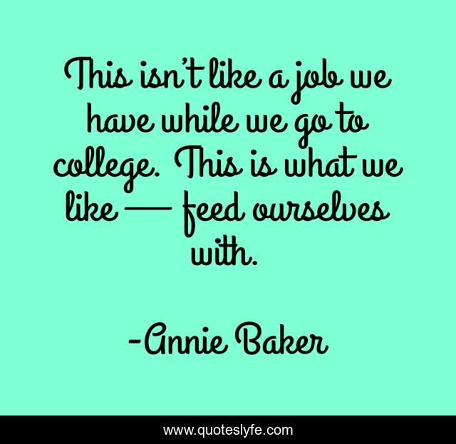 This page presents the quote "This isn’t like a job we have while we go to college. This is what we like — feed ourselves with.". Author of this quote is Annie Baker. This quote is about job-security, life-and-living,.