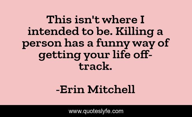 This page presents the quote "This isn't where I intended to be. Killing a person has a funny way of getting your life off-track.". Author of this quote is Erin Mitchell. This quote is about life, dark-comedy, humor, humorous, anthologies, death, short-stories, life-lessons, murder,.