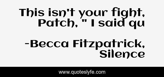 "Becca Fitzpatrick, Silence Quotes." Quoteslyfe.com, 2025. Sun. 07 Dec. 2025. <https://www.quoteslyfe.com/quote/This-isn-t-your-fight-Patch-I-168453>.