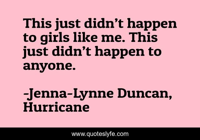 "Jenna-Lynne Duncan, Hurricane Quotes." Quoteslyfe.com, 2025. Tue. 09 Dec. 2025. <https://www.quoteslyfe.com/quote/This-just-didn-t-happen-to-girls-148385>.
