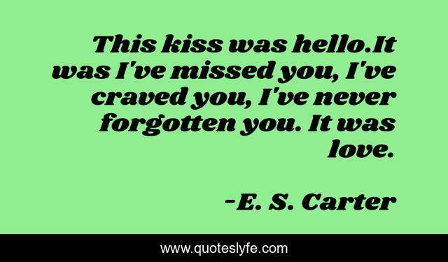 This page presents the quote "This kiss was hello.It was I've missed you, I've craved you, I've never forgotten you. It was love.". Author of this quote is E. S. Carter. This quote is about romance, love, kiss, affection,.