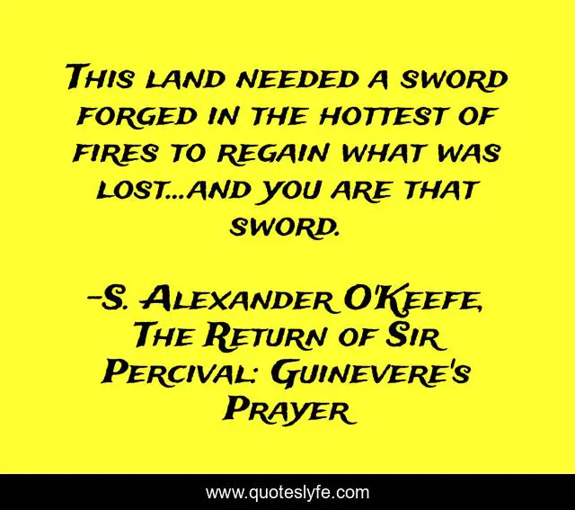 "S. Alexander O'Keefe, The Return of Sir Percival: Guinevere's Prayer Quotes." Quoteslyfe.com, 2025. Sun. 07 Dec. 2025. <https://www.quoteslyfe.com/quote/This-land-needed-a-sword-forged-in-104249>.