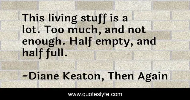 This page presents the quote "This living stuff is a lot. Too much, and not enough. Half empty, and half full.". Author of this quote is Diane Keaton, Then Again. .