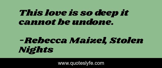 This page presents the quote "This love is so deep it cannot be undone.". Author of this quote is Rebecca Maizel, Stolen Nights. This quote is about rhode, paranormal-romance, favorites,.