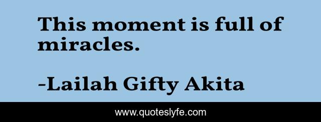 This page presents the quote "This moment is full of miracles.". Author of this quote is Lailah Gifty Akita. This quote is about miracles, thankful, moment,.