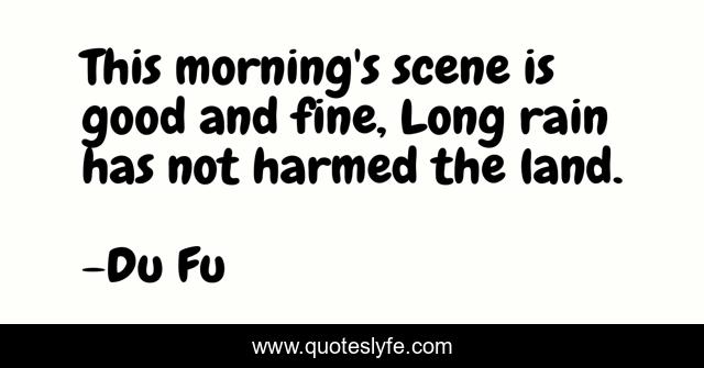 This page presents the quote "This morning's scene is good and fine, Long rain has not harmed the land.". Author of this quote is Du Fu. This quote is about good, rain, long,.