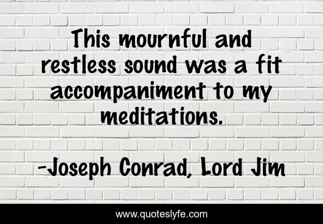 This page presents the quote "This mournful and restless sound was a fit accompaniment to my meditations.". Author of this quote is Joseph Conrad, Lord Jim. This quote is about heart, empathy, love, lost-love, lost, thinking, nostalgia, mourning, tradgedy,.