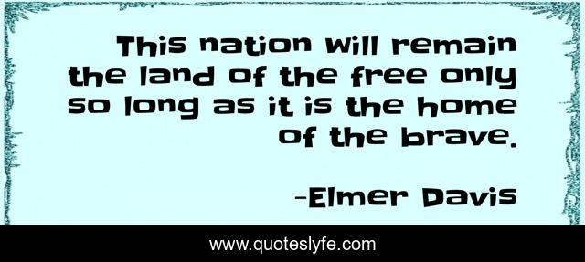 This page presents the quote "This nation will remain the land of the free only so long as it is the home of the brave.". Author of this quote is Elmer Davis. This quote is about freedom, bravery, nation,.