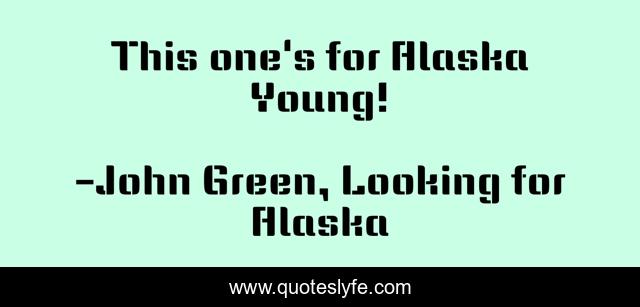 "John Green, Looking for Alaska Quotes." Quoteslyfe.com, 2025. Tue. 09 Dec. 2025. <https://www.quoteslyfe.com/quote/This-one-s-for-Alaska-Young-41154>.