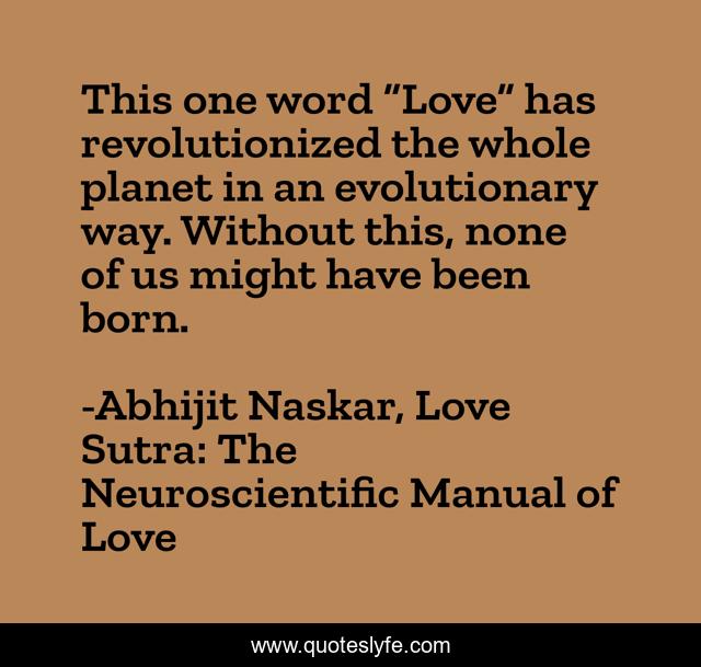 This page presents the quote "This one word “Love” has revolutionized the whole planet in an evolutionary way. Without this, none of us might have been born.". Author of this quote is Abhijit Naskar, Love Sutra: The Neuroscientific Manual of Love. This quote is about neurobiology, love, mankind, affection,.