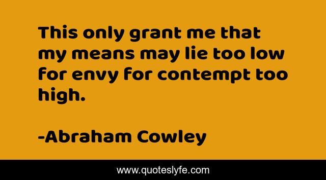This page presents the quote "This only grant me that my means may lie too low for envy for contempt too high.". Author of this quote is Abraham Cowley. .