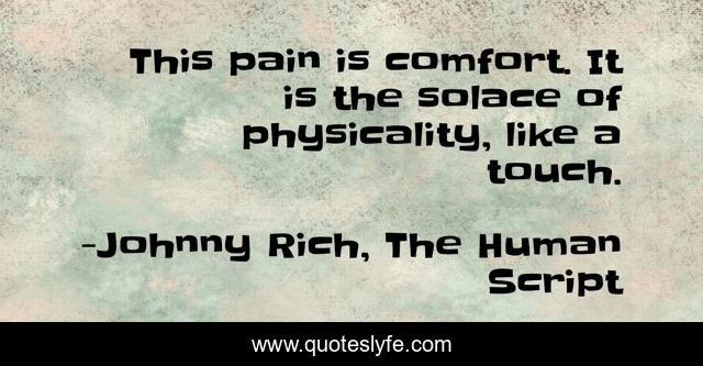 "Johnny Rich, The Human Script Quotes." Quoteslyfe.com, 2025. Tue. 09 Dec. 2025. <https://www.quoteslyfe.com/quote/This-pain-is-comfort-It-is-the-76411>.