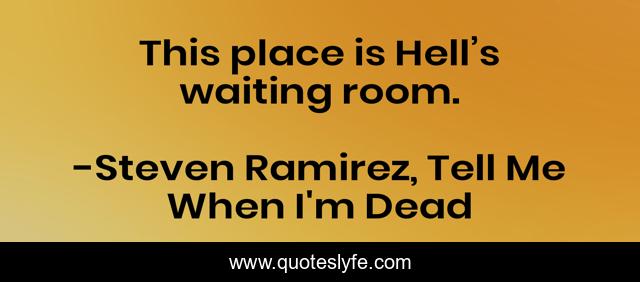"Steven Ramirez, Tell Me When I'm Dead Quotes." Quoteslyfe.com, 2025. Tue. 09 Dec. 2025. <https://www.quoteslyfe.com/quote/This-place-is-Hell-s-waiting-room-156442>.