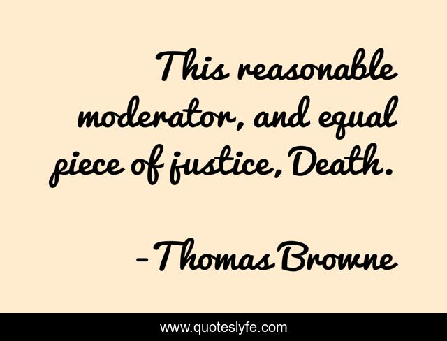This page presents the quote "This reasonable moderator, and equal piece of justice, Death.". Author of this quote is Thomas Browne. This quote is about justice, death,.