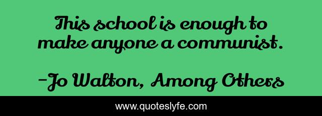 This page presents the quote "This school is enough to make anyone a communist.". Author of this quote is Jo Walton, Among Others. This quote is about communist, school,.