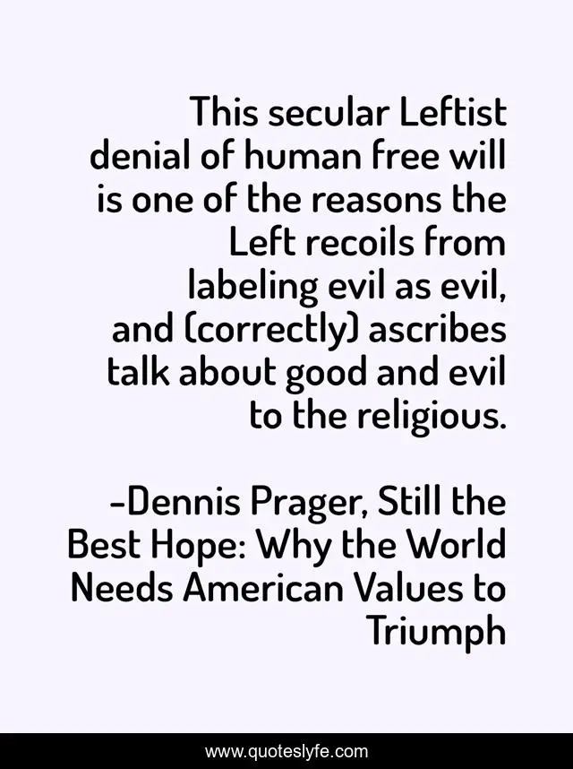"Dennis Prager, Still the Best Hope: Why the World Needs American Values to Triumph Quotes." Quoteslyfe.com, 2025. Sat. 06 Dec. 2025. <https://www.quoteslyfe.com/quote/This-secular-Leftist-denial-of-human-free-154159>.