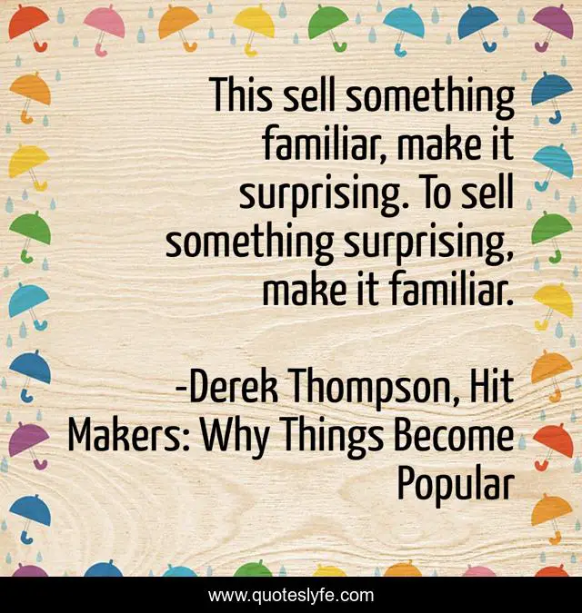 "Derek Thompson, Hit Makers: Why Things Become Popular Quotes." Quoteslyfe.com, 2025. Sun. 07 Dec. 2025. <https://www.quoteslyfe.com/quote/This-sell-something-familiar-make-it-surprising-199511>.