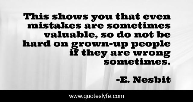 This page presents the quote "This shows you that even mistakes are sometimes valuable, so do not be hard on grown-up people if they are wrong sometimes.". Author of this quote is E. Nesbit. This quote is about adults, humour, children,.