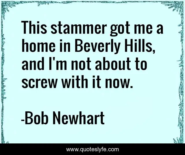 This page presents the quote "This stammer got me a home in Beverly Hills, and I'm not about to screw with it now.". Author of this quote is Bob Newhart. This quote is about me, now, hills,.