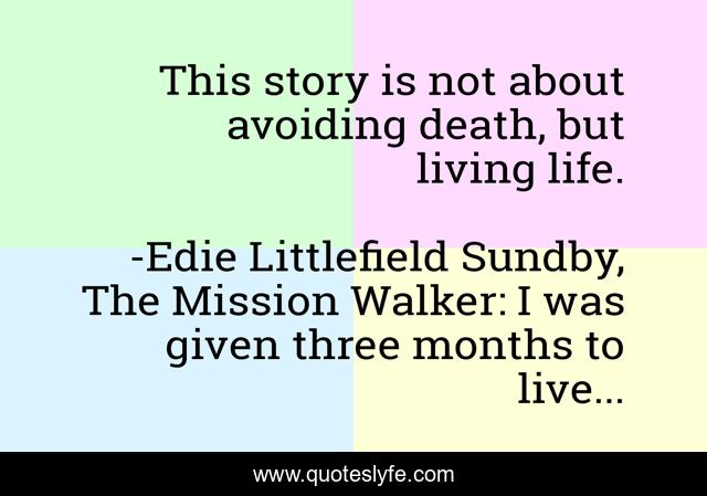 "Edie Littlefield Sundby, The Mission Walker: I was given three months to live... Quotes." Quoteslyfe.com, 2025. Fri. 05 Dec. 2025. <https://www.quoteslyfe.com/quote/This-story-is-not-about-avoiding-death-49458>.
