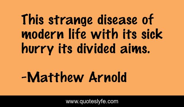 This page presents the quote "This strange disease of modern life with its sick hurry its divided aims.". Author of this quote is Matthew Arnold. .