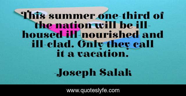 This page presents the quote "This summer one-third of the nation will be ill-housed ill-nourished and ill-clad. Only they call it a vacation.". Author of this quote is Joseph Salak. This quote is about travel, cities,.