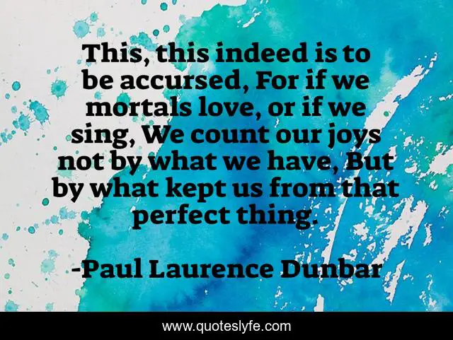 This page presents the quote "This, this indeed is to be accursed, For if we mortals love, or if we sing, We count our joys not by what we have, But by what kept us from that perfect thing.". Author of this quote is Paul Laurence Dunbar. .
