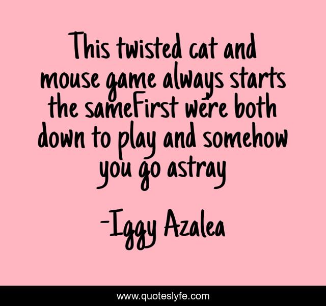 This page presents the quote "This twisted cat and mouse game always starts the sameFirst we're both down to play and somehow you go astray". Author of this quote is Iggy Azalea. This quote is about beautiful, iggyazalea, rapper, catandmouse,.