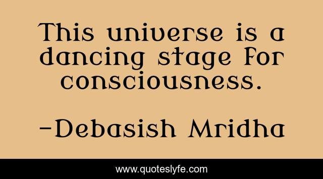 This page presents the quote "This universe is a dancing stage for consciousness.". Author of this quote is Debasish Mridha. This quote is about consciousness, universe, philosophy, debasish-mridha, quotes, inspirational, enthusiasm, debasish-mridha-m-d,.