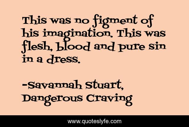 This page presents the quote "This was no figment of his imagination. This was flesh, blood and pure sin in a dress.". Author of this quote is Savannah Stuart, Dangerous Craving. This quote is about paranormal-romance, wolf-shifter-romance, fae,.