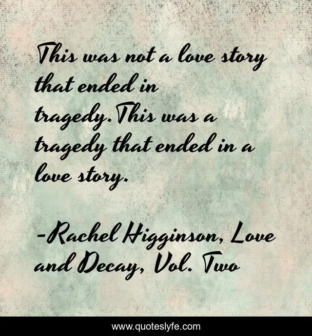 This page presents the quote "This was not a love story that ended in tragedy.This was a tragedy that ended in a love story.". Author of this quote is Rachel Higginson, Love and Decay, Vol. Two. This quote is about end, story, love, tragedy, affection,.