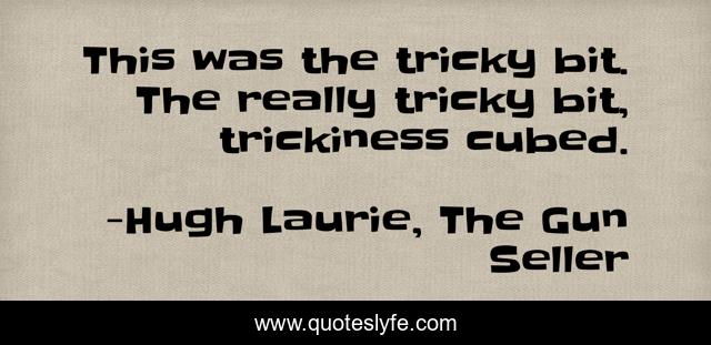 This page presents the quote "This was the tricky bit. The really tricky bit, trickiness cubed.". Author of this quote is Hugh Laurie, The Gun Seller. This quote is about hugh-laurie, house-md, humour,.