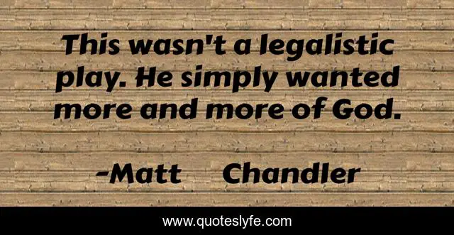 This page presents the quote "This wasn't a legalistic play. He simply wanted more and more of God.". Author of this quote is Matt Chandler. This quote is about discipleship, worship, law,.