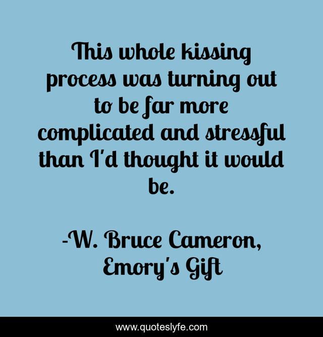 This page presents the quote "This whole kissing process was turning out to be far more complicated and stressful than I'd thought it would be.". Author of this quote is W. Bruce Cameron, Emory's Gift. This quote is about youth, kissing,.