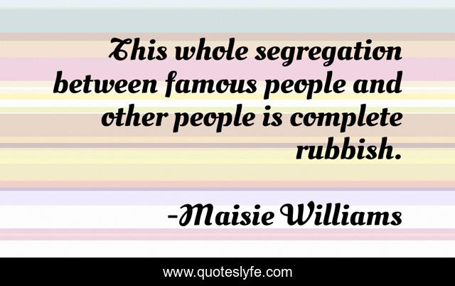 This page presents the quote "This whole segregation between famous people and other people is complete rubbish.". Author of this quote is Maisie Williams. This quote is about famous people, people,.